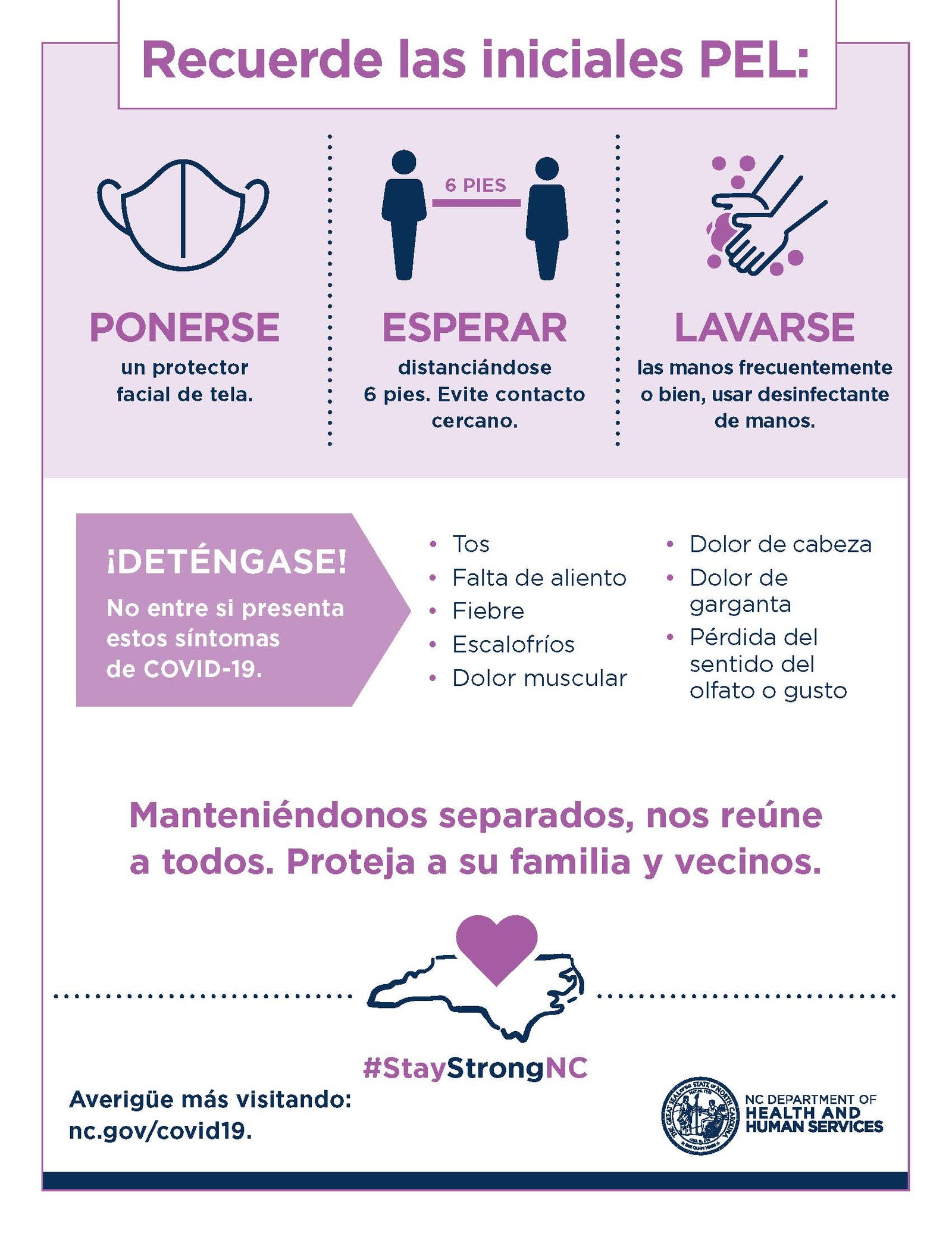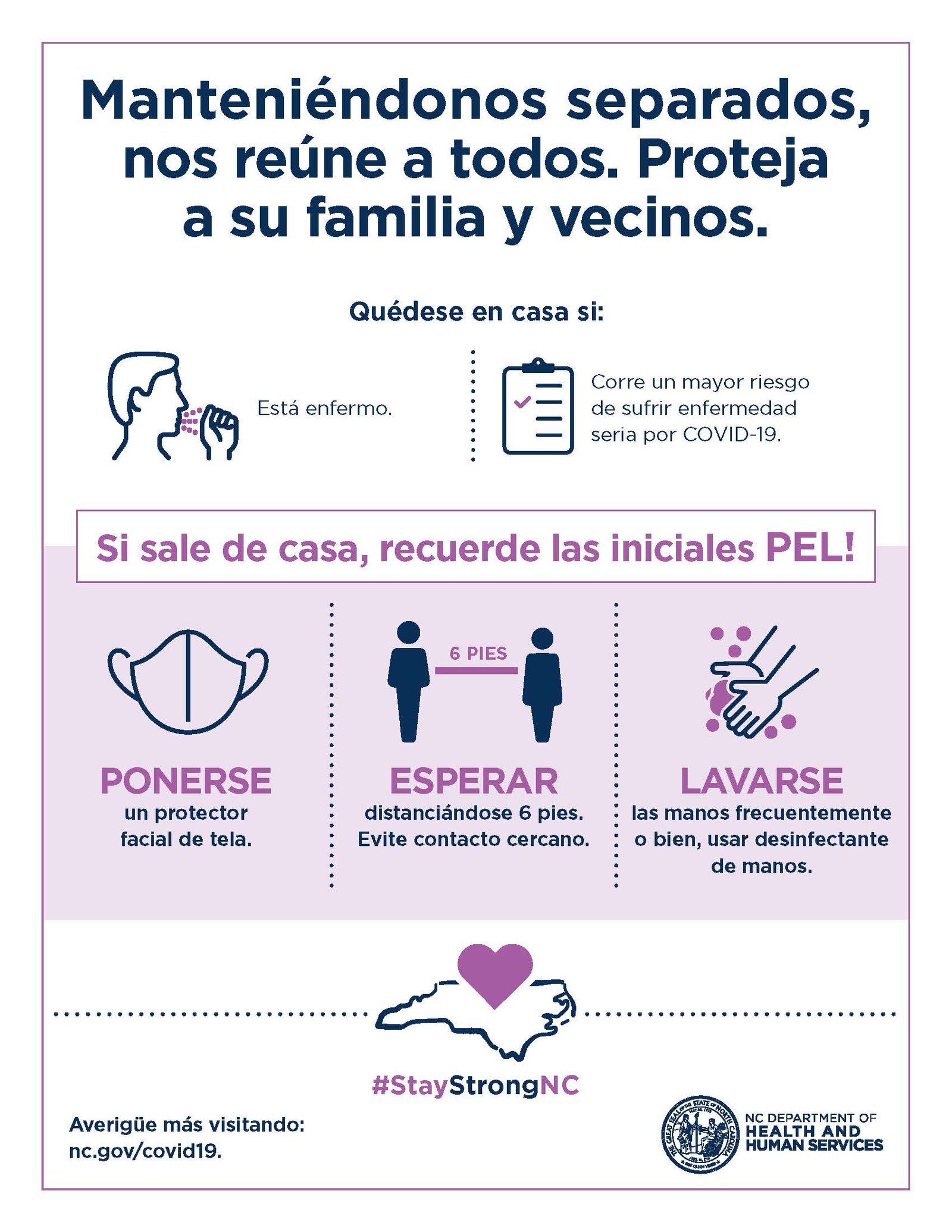 • Visite ncdhhs.gov/coronavirus para obtener información del Departamento de Salud y Servicios Humanos de NC.